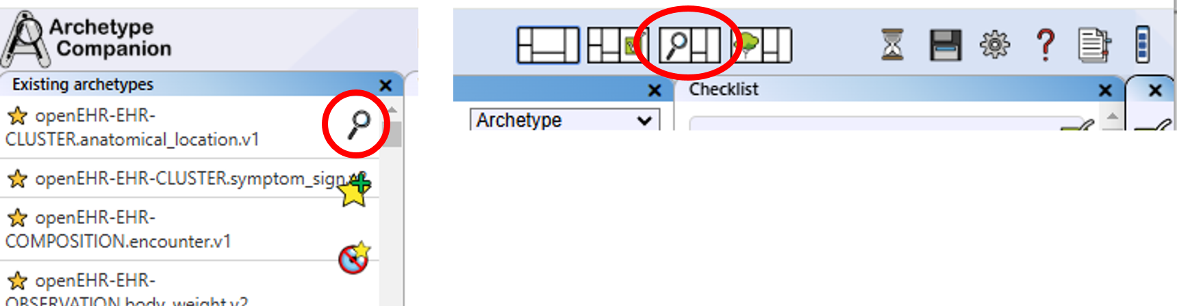 Access the search panel via the archetype list or fast access button.