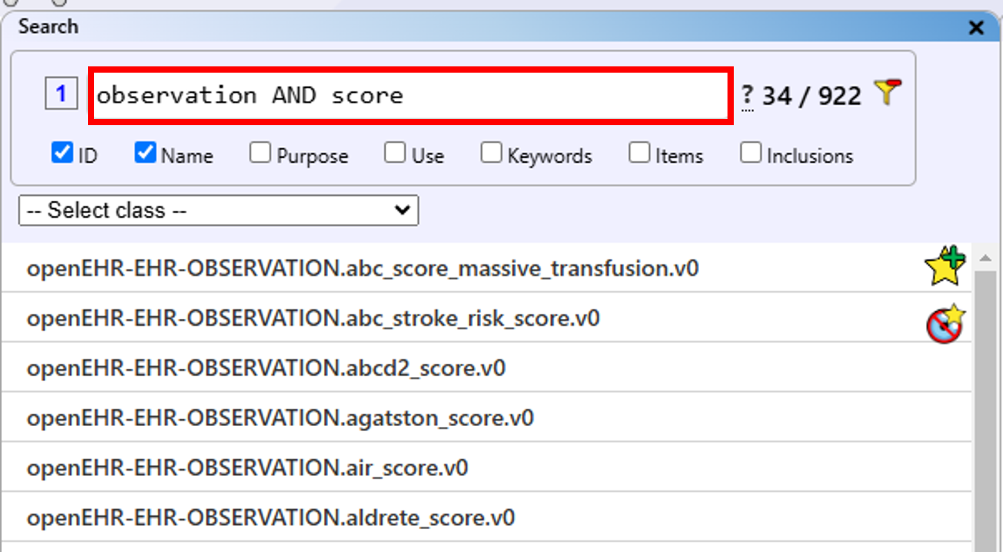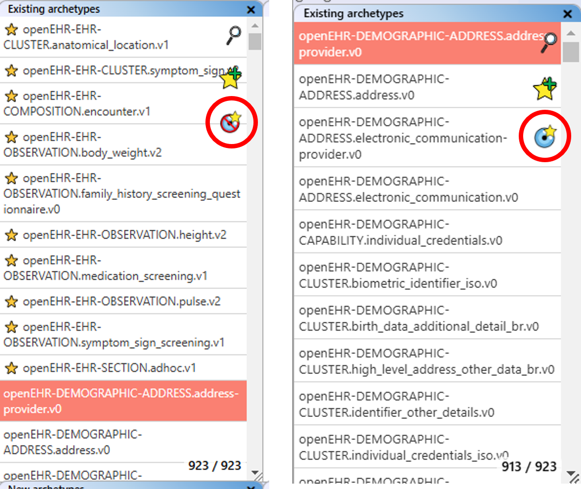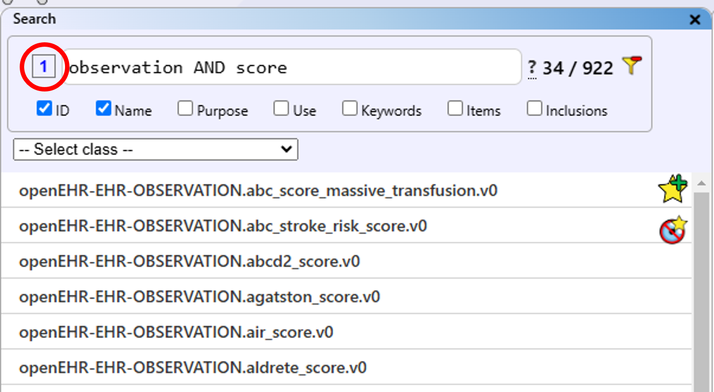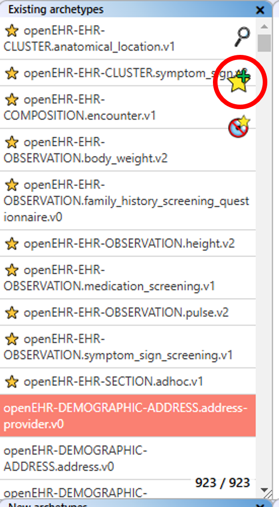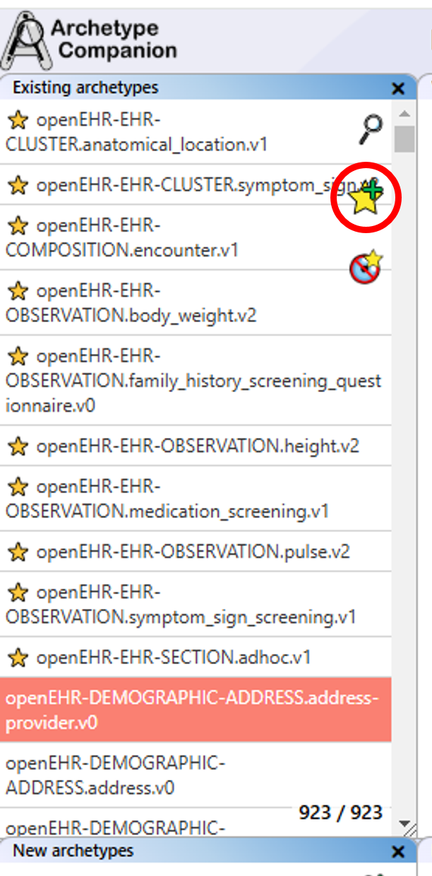 How to Access: The dedicated archetype search can be accessed via the "Open search" button in the "Existing archetype" list or the "Search view" button at the top right of the main view. In the search view, you have the archetype list as in the "Existing archetypes" list, and you can select and transfer archetypes to the collection in the same way.