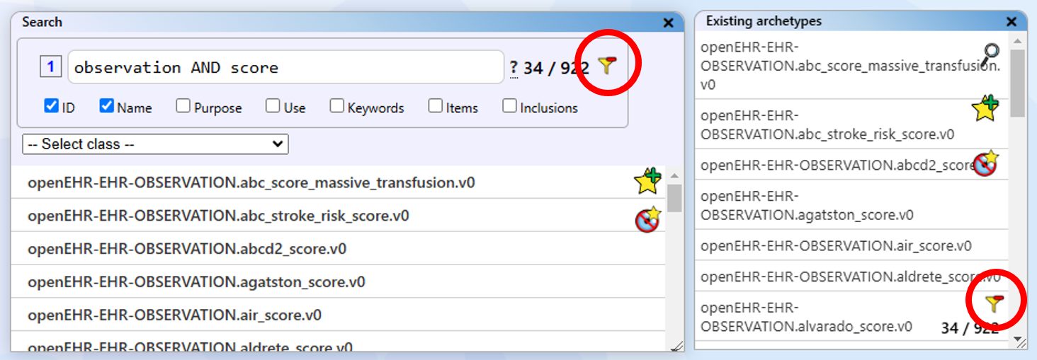 Add Filter: There are different filter options. First, all archetypes can be filtered by class by selecting the desired class in the dropdown menu.