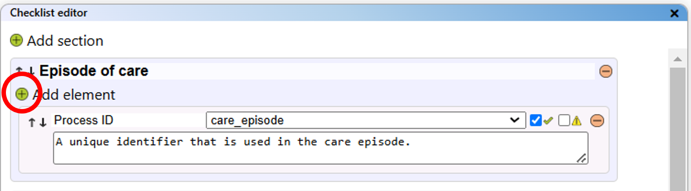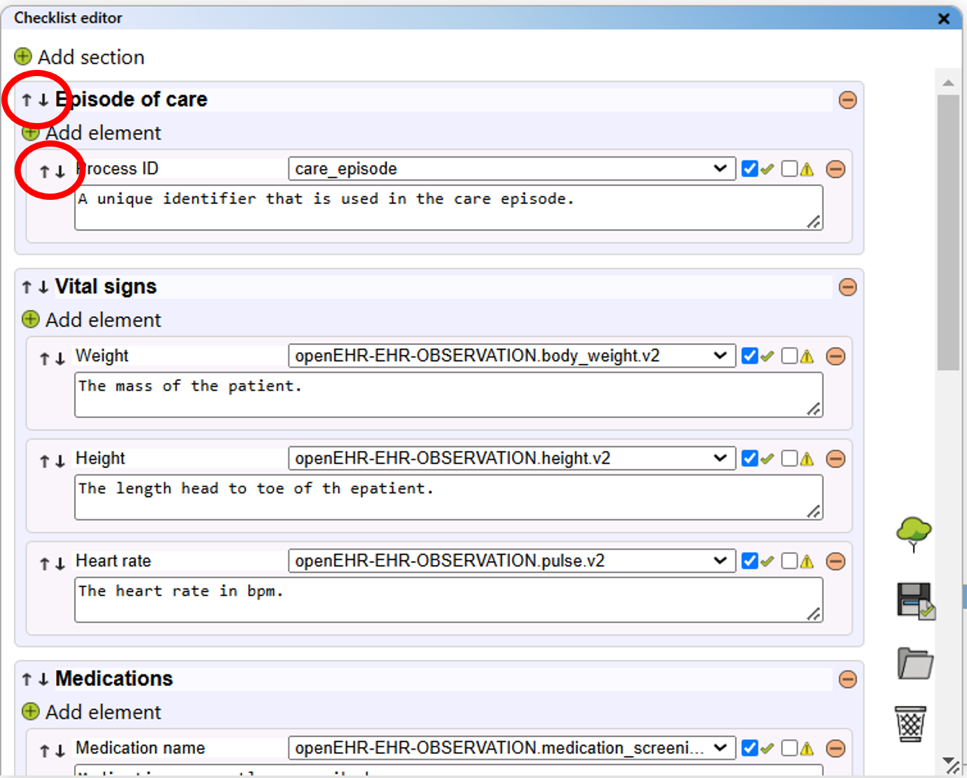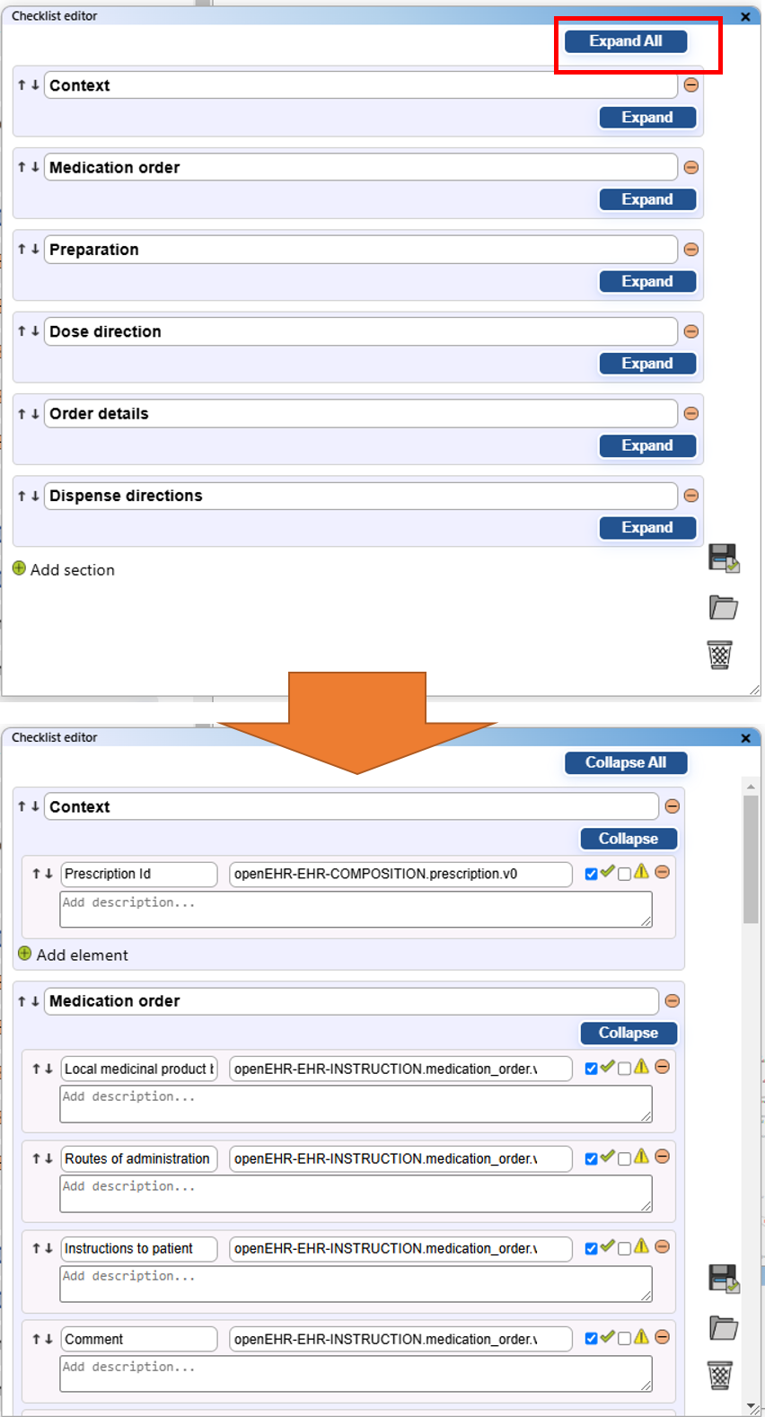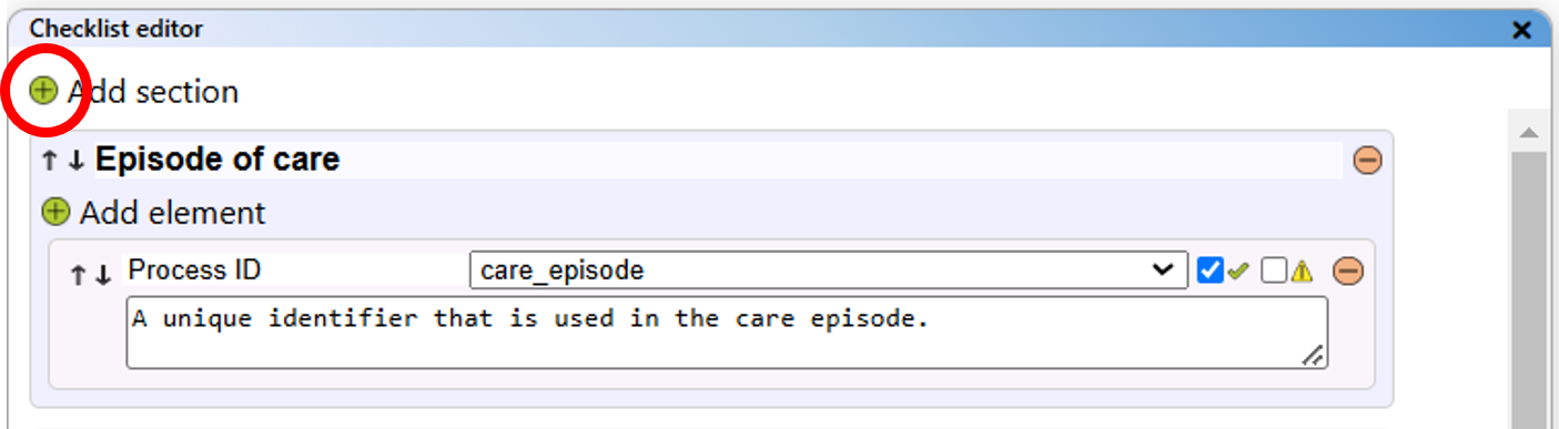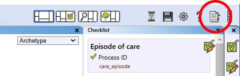 - Checklist editor view: This view opens the checklist editor panel to the right.