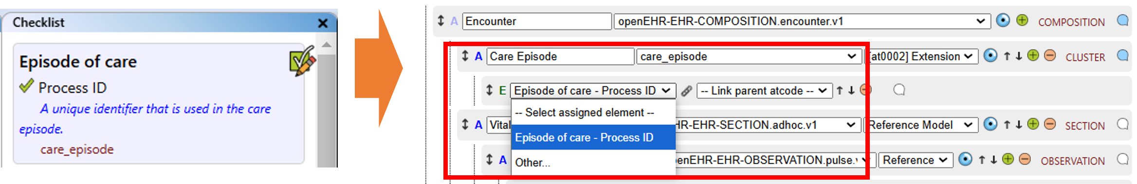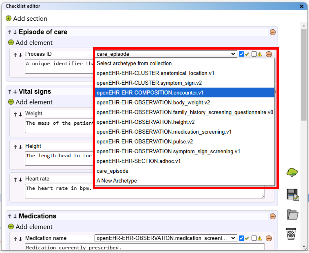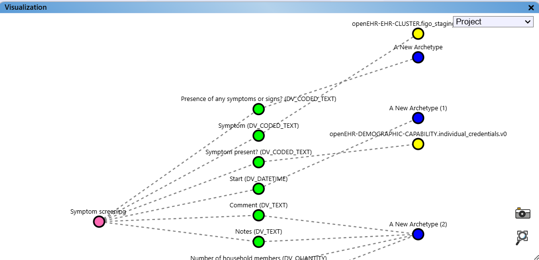 - The "Project" view displays the assignment of archetypes to data elements defined in your checklist.