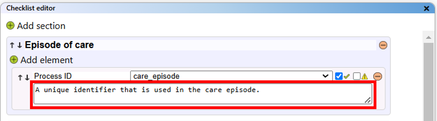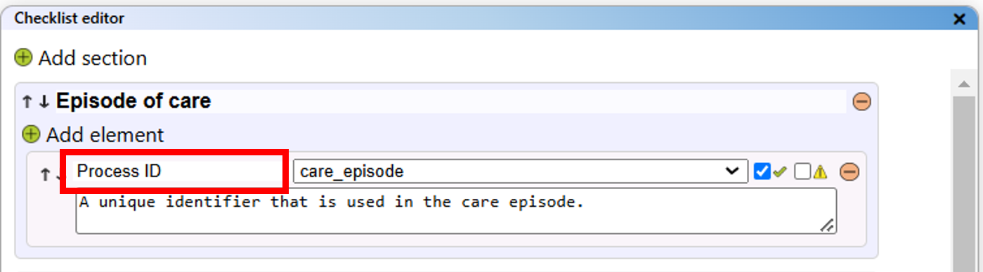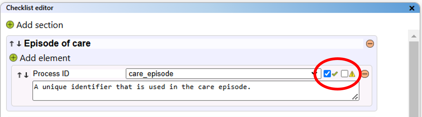 - Data element checklist: Table with all data from the checklist.