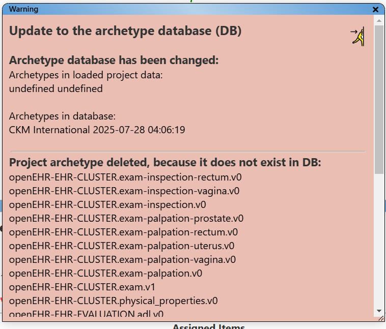Note: If the database is updated and there are changes in the archetype database, the