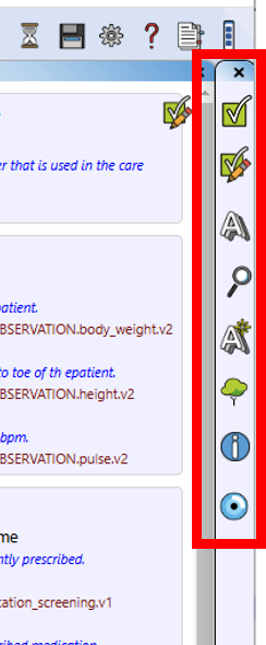 For flexible use of the different windows in the interface, the various windows can be opened with the windows access bar on the right-hand side of the interface.