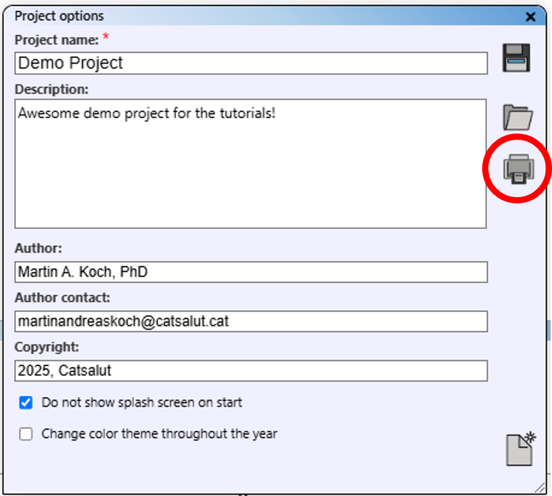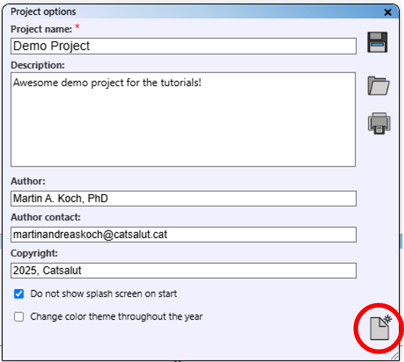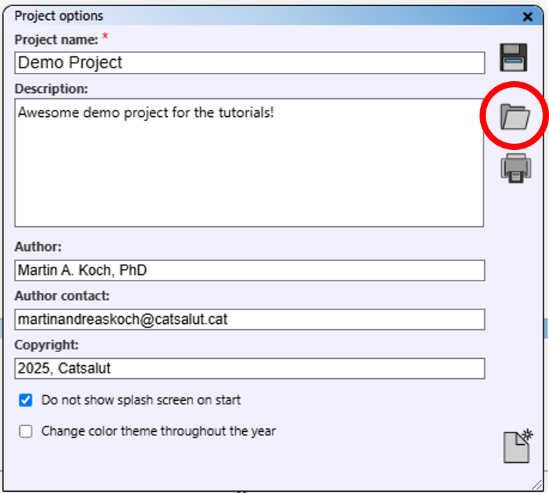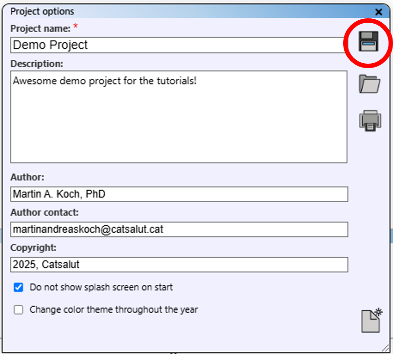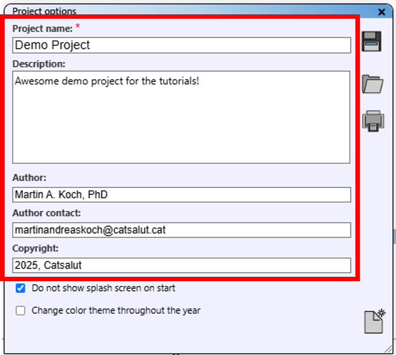 Within "Project options", you can deactivate the splash screen at start-up and activate the colour theme change, which adjusts interface colours based on the time of year.
