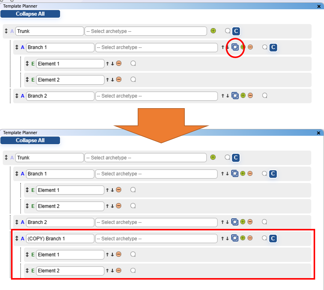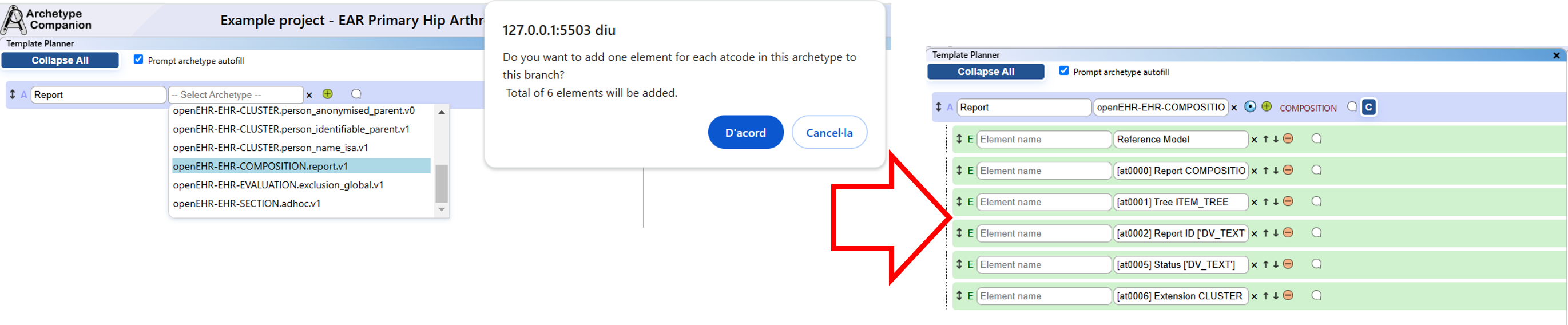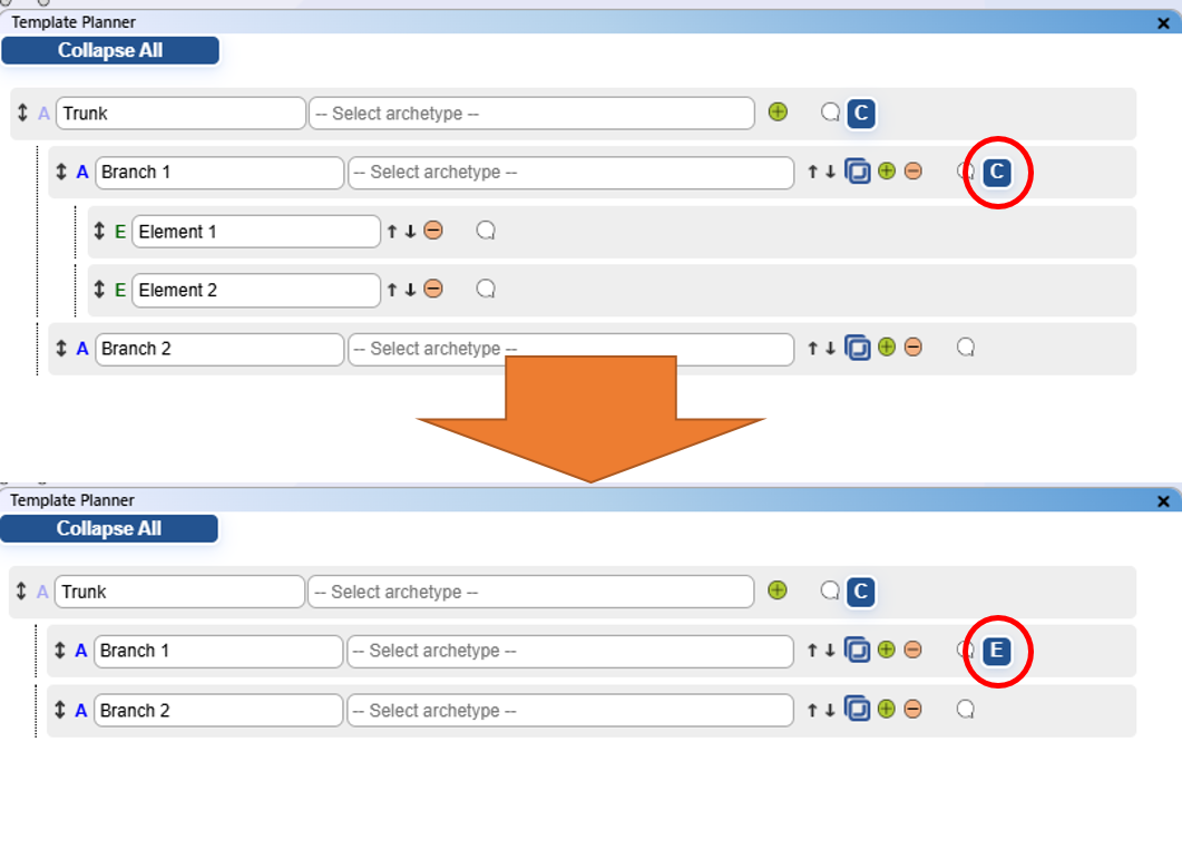 - Planned Archetype Tree: Visualisation of all information from the template planner in the form of a tree-like structure.
