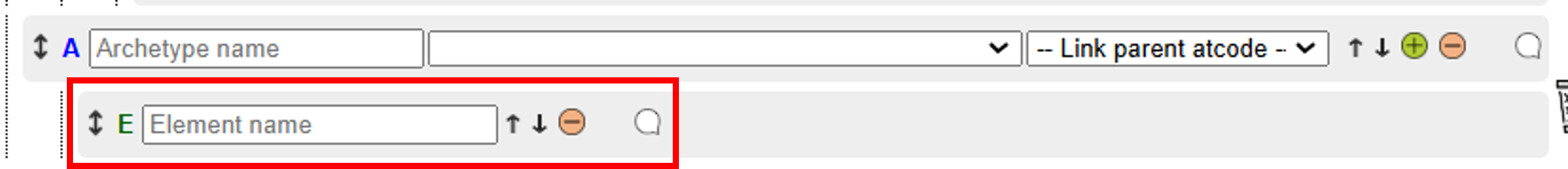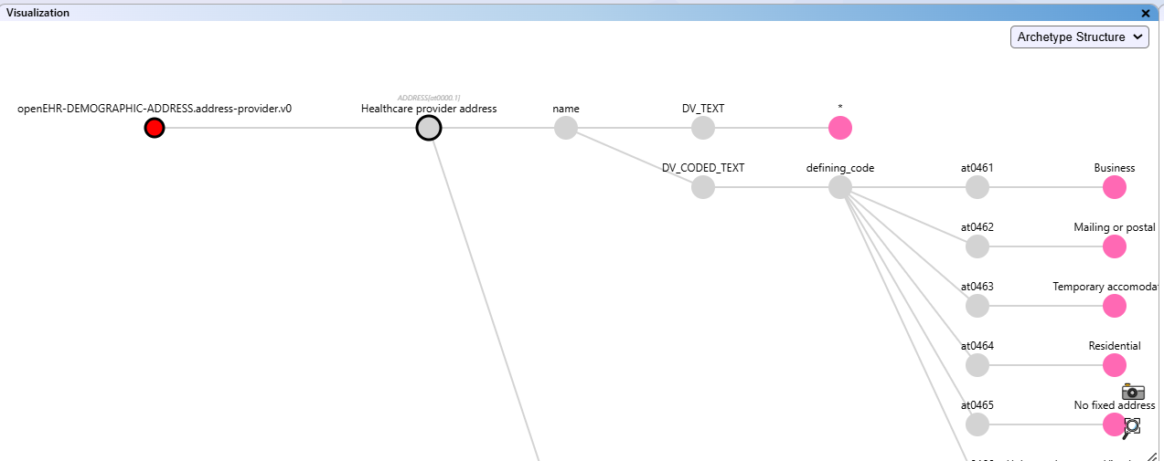 - The structure of archetypes and data elements is indicated by a grey line.